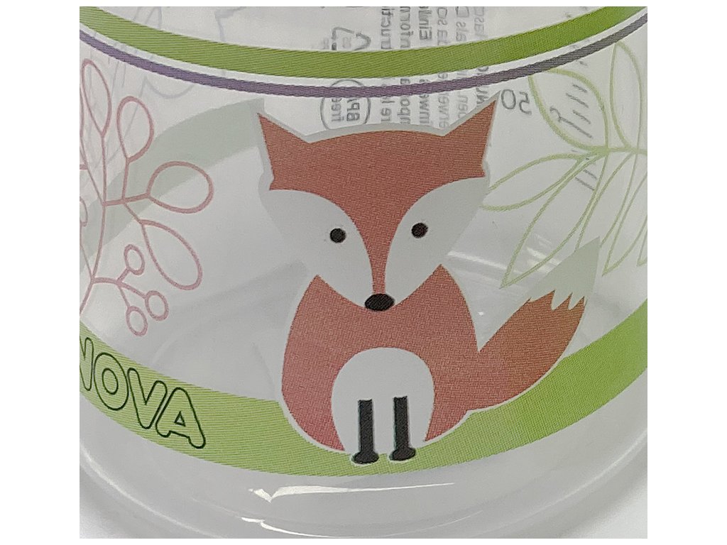 Zelená barva ochranného víčka a motiv lišáka upoutají pozornost dětí.
