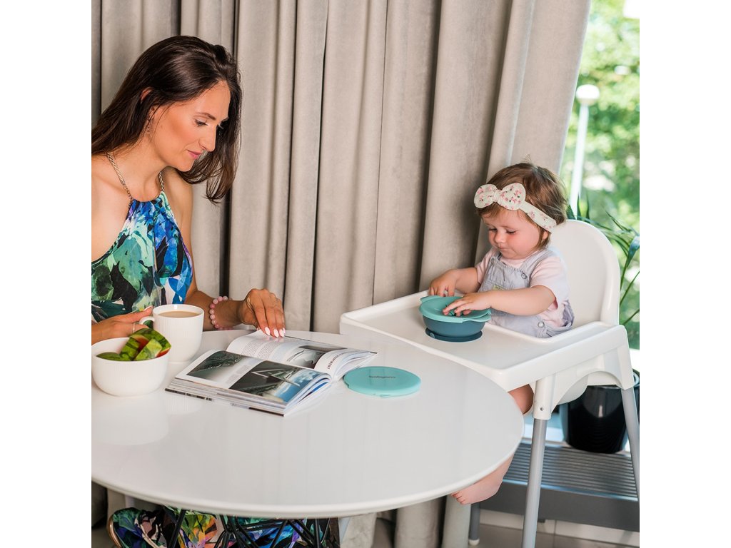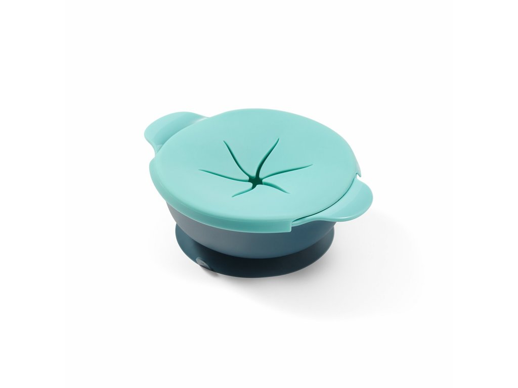 Set obsahuje misku s přísavkou, odkládací víko a víko na občerstvení. Před každým použitím umyjte všechny části a vysušte, lze mýt v myčce nádobí. Lze použít bez víček pro ohřev v mikrovlnné troubě.