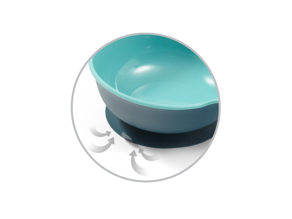 přísavka brání pohybu misky po stole a vylitím nebo vysypáním obsahu
