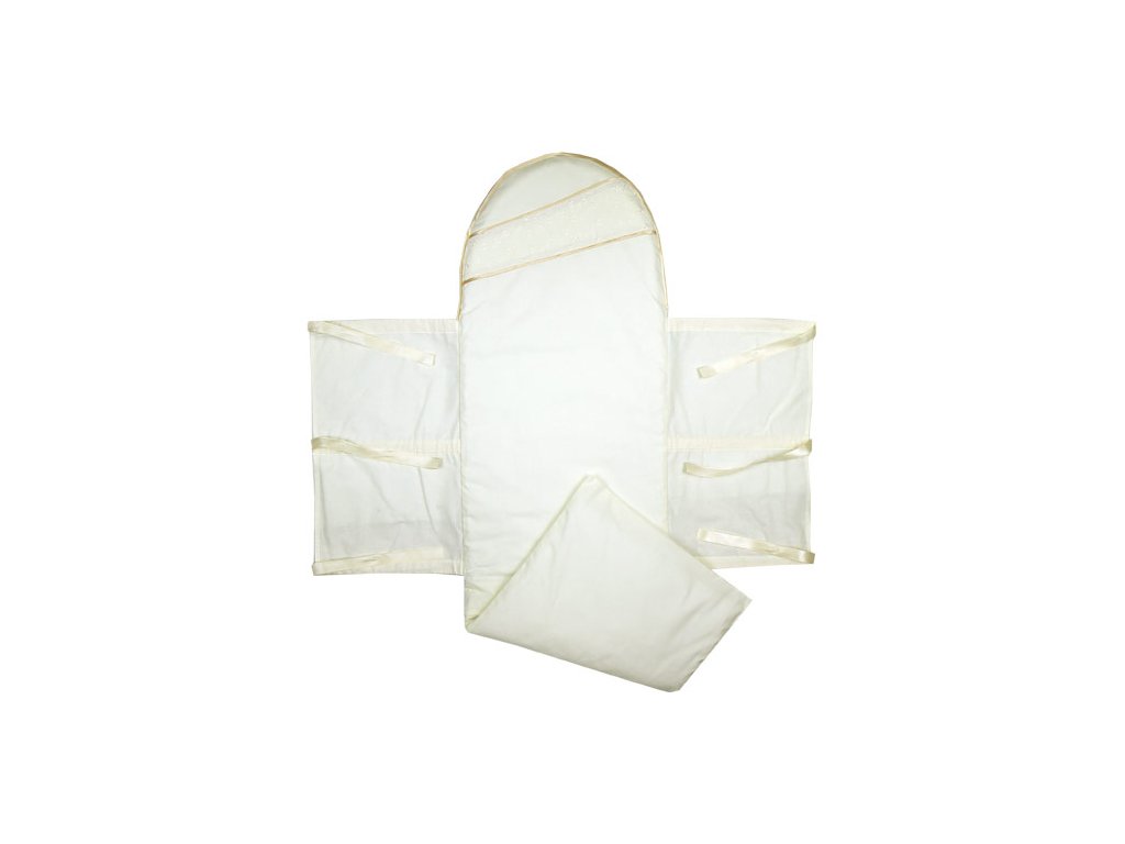 Klasická zavinovačka je zdobená saténovou stužkou v kombinaci s vyšívanou madeirou a je vhodná zvláště pro neklidné děti, které budou v zavinovačce pevně zavinuté a tento těsnější prostor jim bude připomínat prostřední v maminčině bříšku tak se i neklidné děti zklidní.