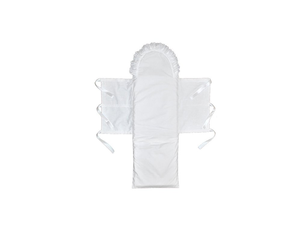 Klasická zavinovačka pro miminka je obdélníková s krajkovým kanýrem o šířce 5 cm.