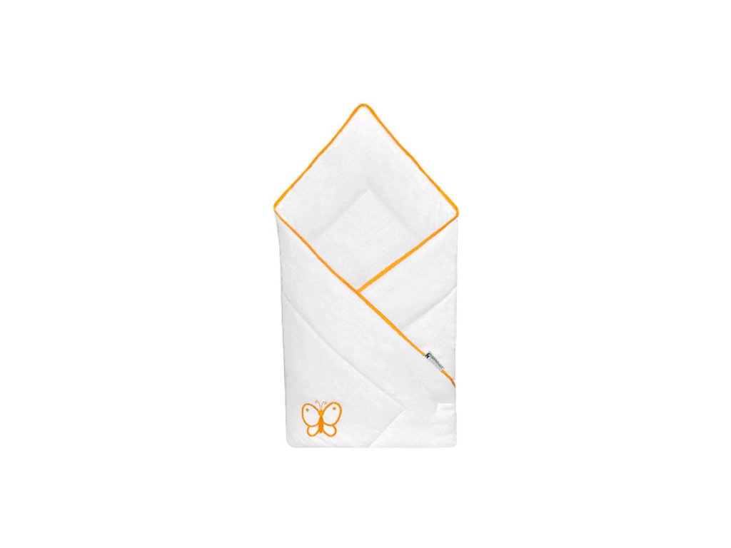 Rychlozavinovačka 80x80 Uni bílá s vyšívkou orange je dětská deka, ze které pomocí suchých zipů vytvoříte zavinovačku
