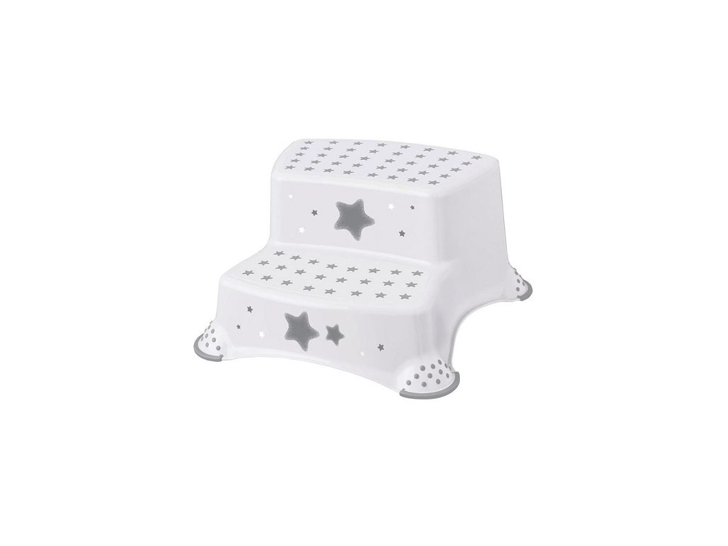 Stabilní dvoustupňové bílé stupátko s proti skluzovou úpravou bezpečné pro malé děti k umyvadlu nebo toaletě při každodenní činnosti.